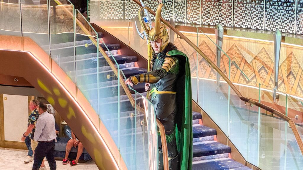 For example, early in the route, the God of Mischief himself, Loki, takes over one of Zayah and Gamble’s story times (and subsequently the entire ship) and names himself king. Rather than having a short spectacle that ends there, the story breaks the fourth wall as Loki greets his new subjects (that’s us, the passengers on board). This isn’t a traditional character interaction where you wait in line; Loki will happily approach you as he walks through the Great Hall.