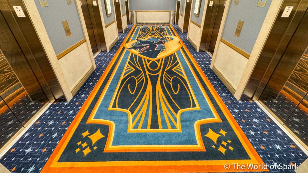 If you want to admire the theme of heroes and villains with some degree of separation, there are lots of details and easter eggs to find. The ship itself is divided into two factions, with the forward stair landings and elevator lobbies featuring artwork and rugs dedicated to the villains, and the rear dedicated to the heroes.
