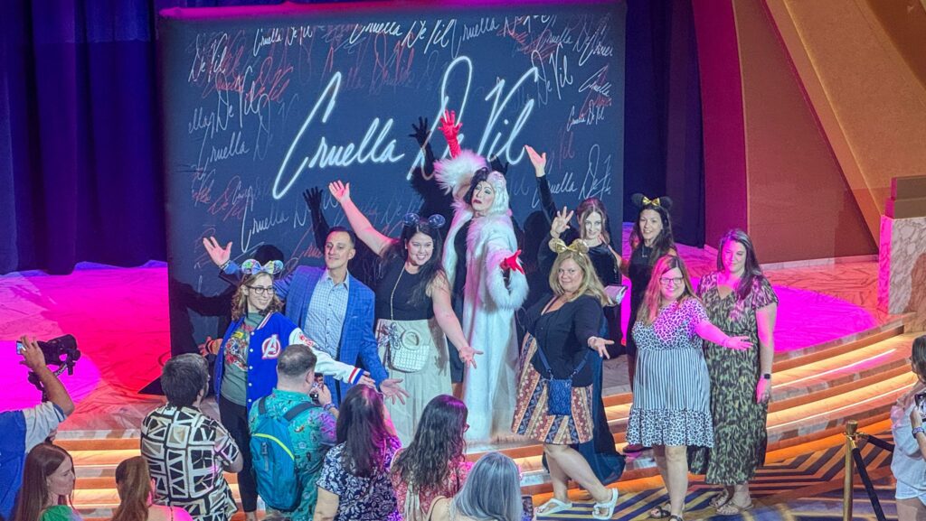 Storytelling moments like this are common throughout the 3 or 4 night itineraries that the Disney Destiny is currently scheduled on. In “Making highs with Cruella,“The passengers brainstorm with Cruella de Vil to come up with a new theme song (because the old Roger wrote about her in 101 Dalmatians It’s a bit unfair, don’t you think?). Luckily, De Vil’s, the very first villain-themed space at sea where all this takes place, is a piano bar, and there’s a musician sitting at the piano ready to compose the new song with you.