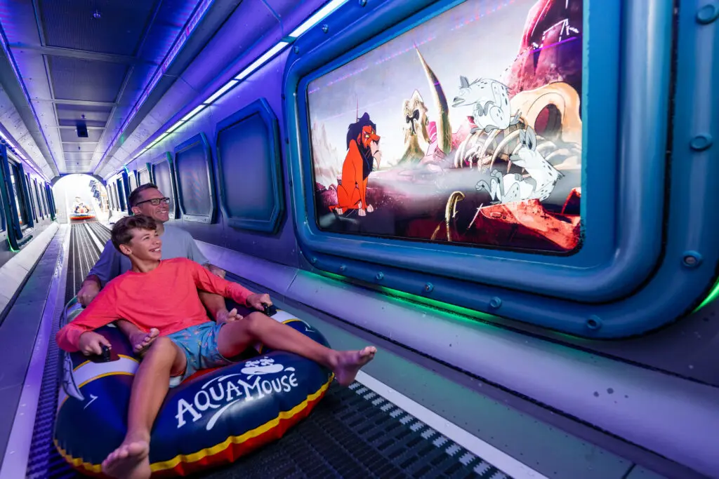 AquaMouse on the Disney Destiny has a brand new story unique to the ship called “Sing A Silly Song.” It embraces the ship’s heroes-and-villains theme, with cameos appearing during the ride’s lift. Be on the lookout for familiar faces like the Evil Queen from Snow White and the Seven Dwarfs, Scar from The Lion King, and even the dancing skeletons from The Skeleton Dance.